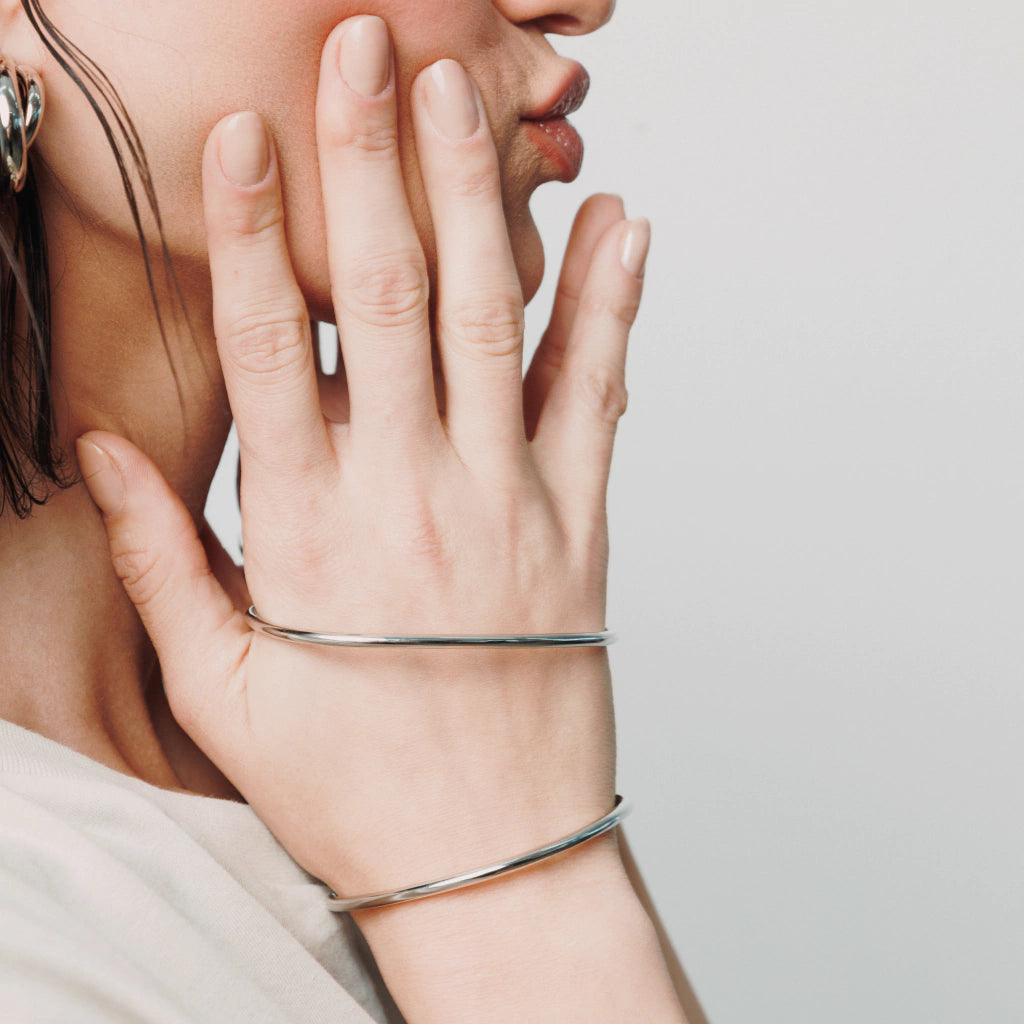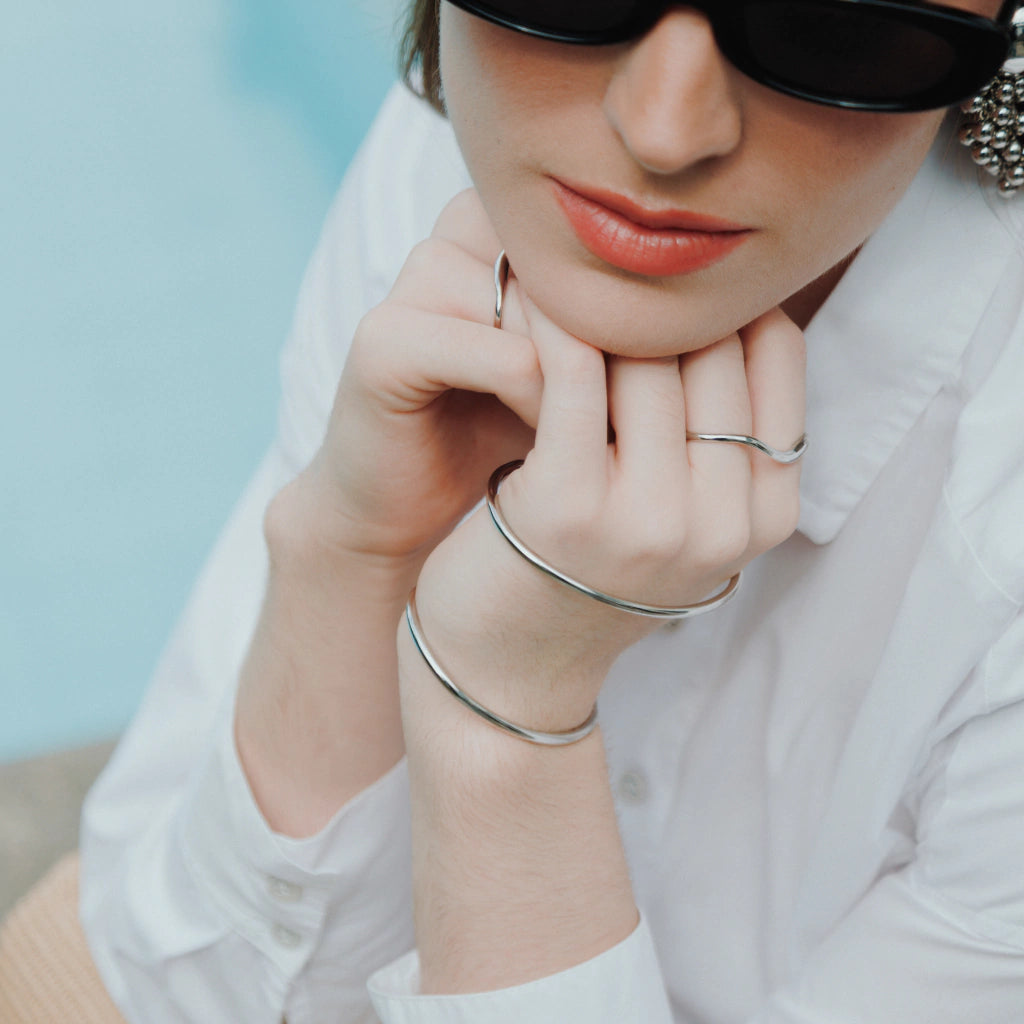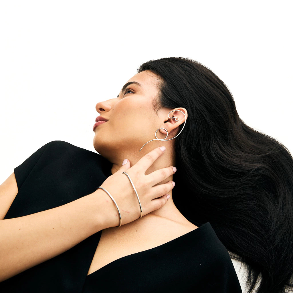 fil lisse, combine une partie entrelacée et une partie ouverte. Sa conception polyvalente permet de le porter à l'une ou l'autre main, la partie entrelacée étant tournée vers l'extérieur et s'enroulant autour de la main. (Épaisseur du fil : 0,3 cm)