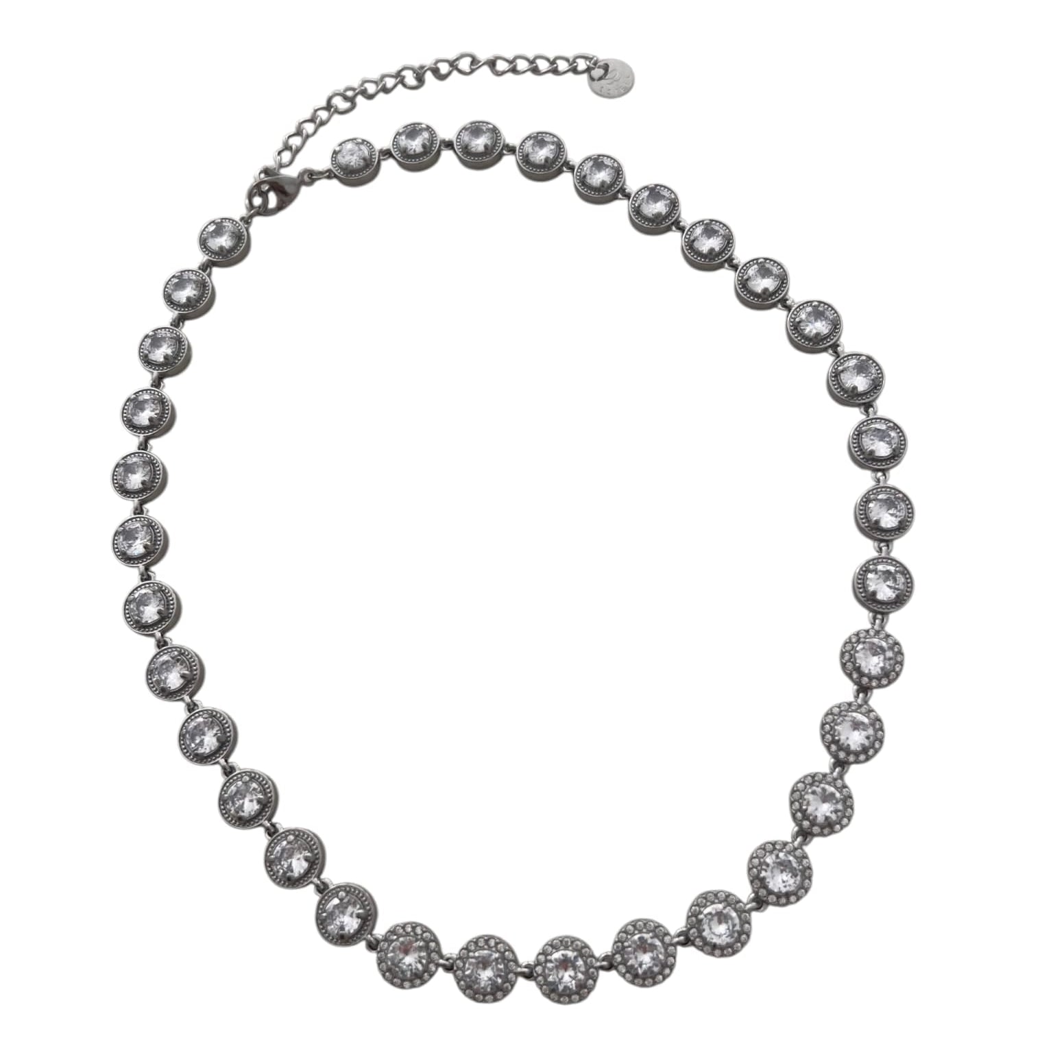 A continuous band of light, this choker features a seamless row of brilliant zircons set in a sleek stainless steel band. The uninterrupted sparkle creates a luminous halo at the neckline for a truly radiant effect.